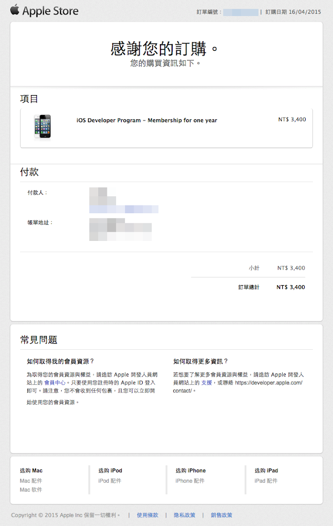 如果也想開發 Mac or Safari 的程式也可以在這邊順便一起付錢。