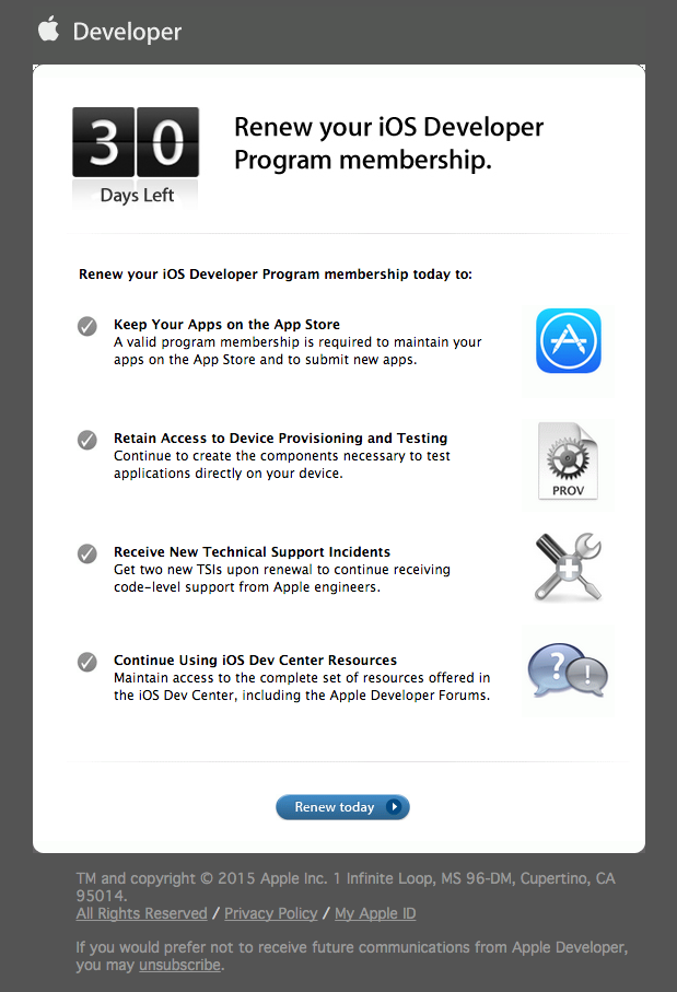 前幾天收到了 Apple 寄來的信: