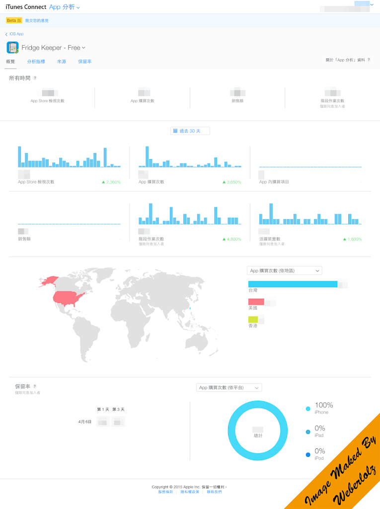 不過要注意一件事,App 分析這項服務只能記錄使用 iOS 8 的裝置,如果使用者還在使用 iOS 8 之前的版本就不會被記錄下來。