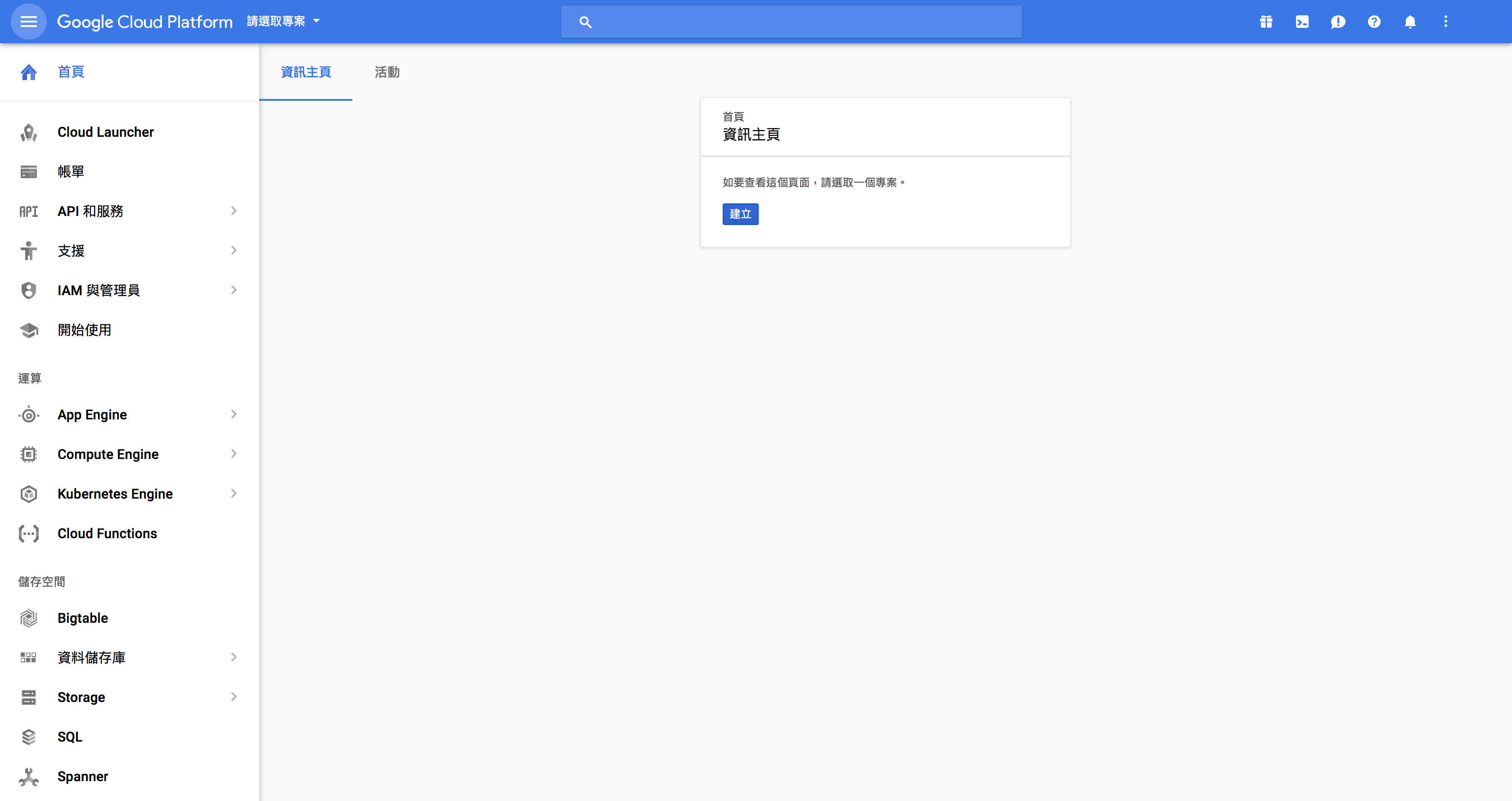 進入 GCP 的主控台後,會看到一片白,十分的乾淨。