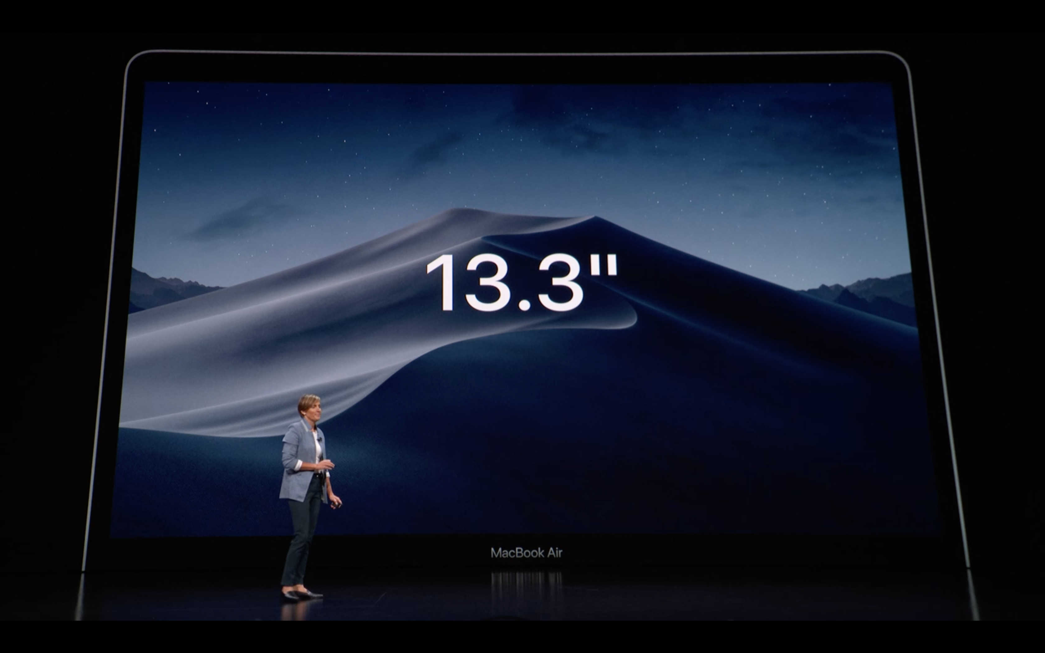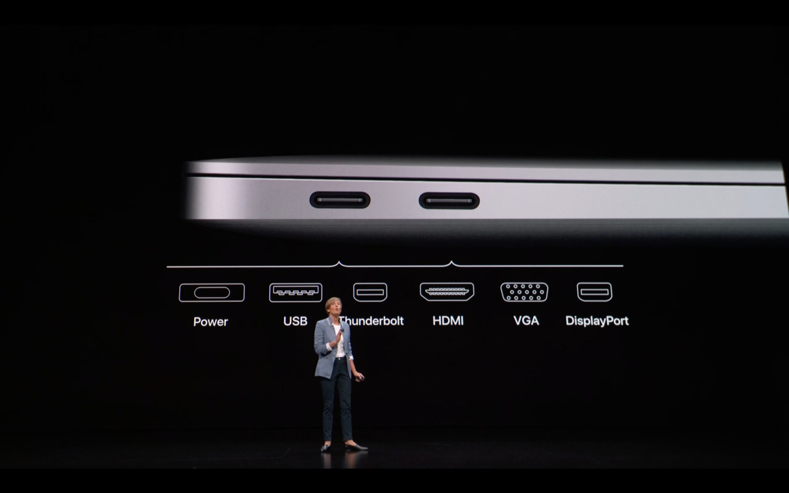 螢幕大小為 13.3″、解析度高達 400 萬畫素、有 Touch ID、兩個 Thunderbolt 3.0 (USB-C),