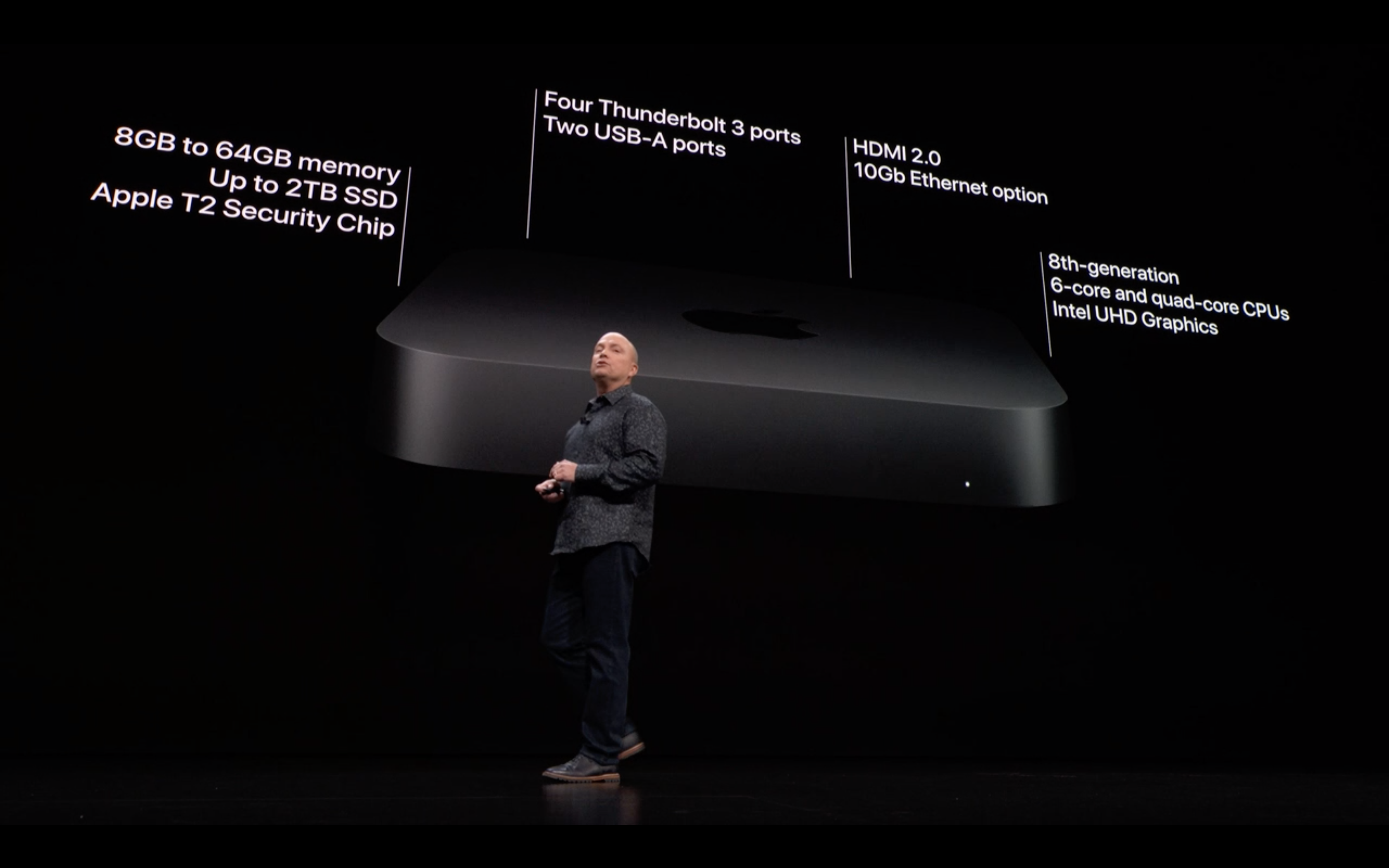 這次的 Mac Mini 更新帶來了 4 核心 CPU(可升級為 6 核心)、32GB 記憶體(可升級至 64GB)、最大 2TB 的 SSD。