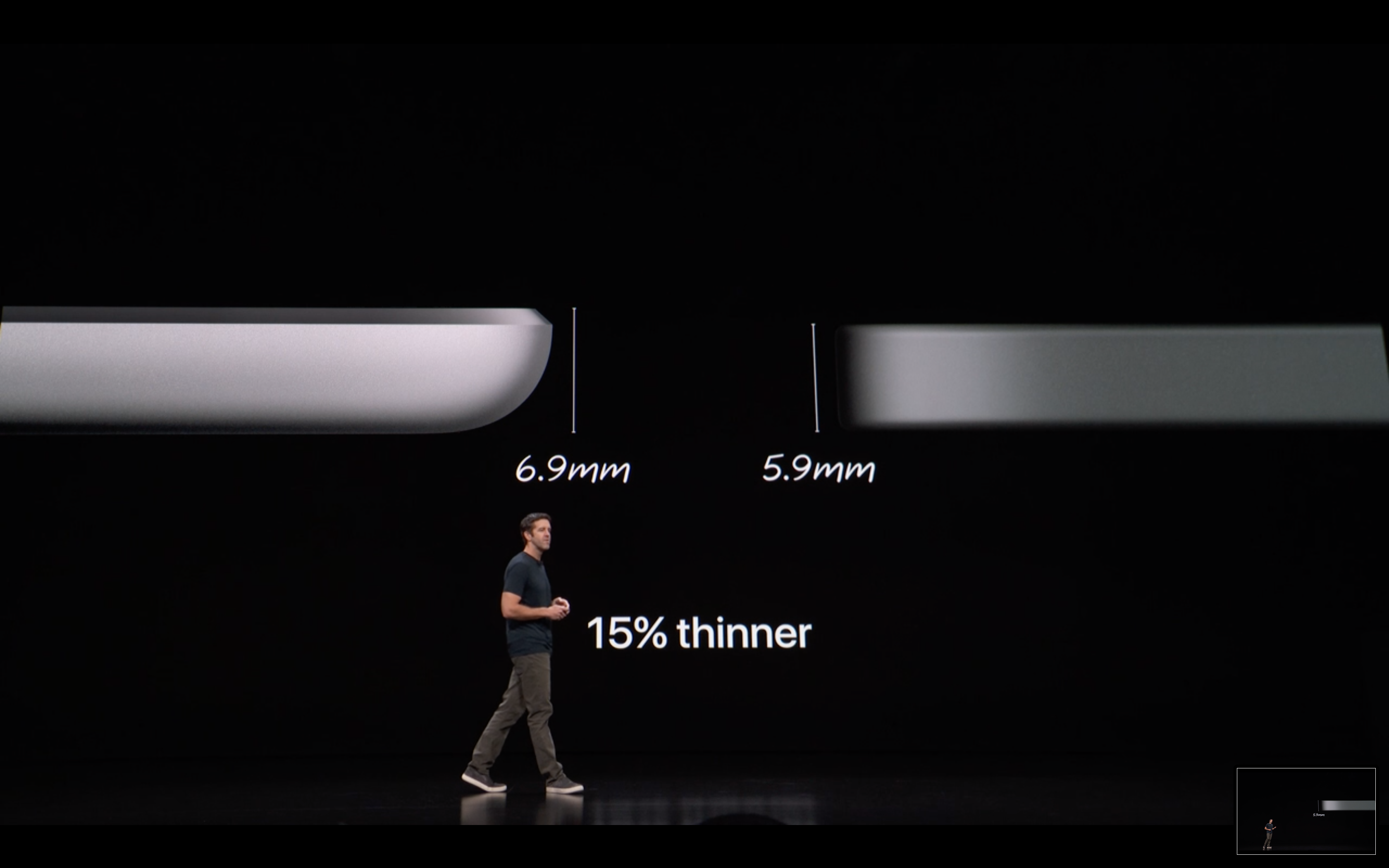 這次更新,螢幕採用跟 iPhone XR 相同的 Liquid Retina 技術、減少整體體積、採用 Face ID、A12X Bionic CPU、容量最大可達 1TB、改採用 USB-C 連接孔。